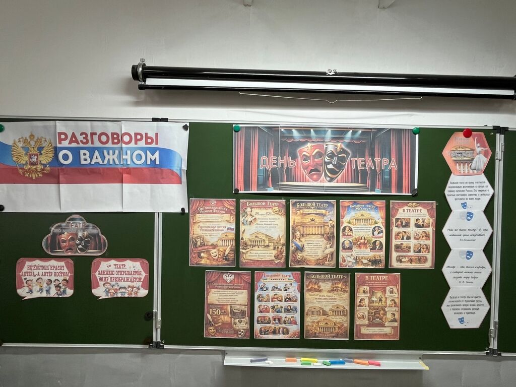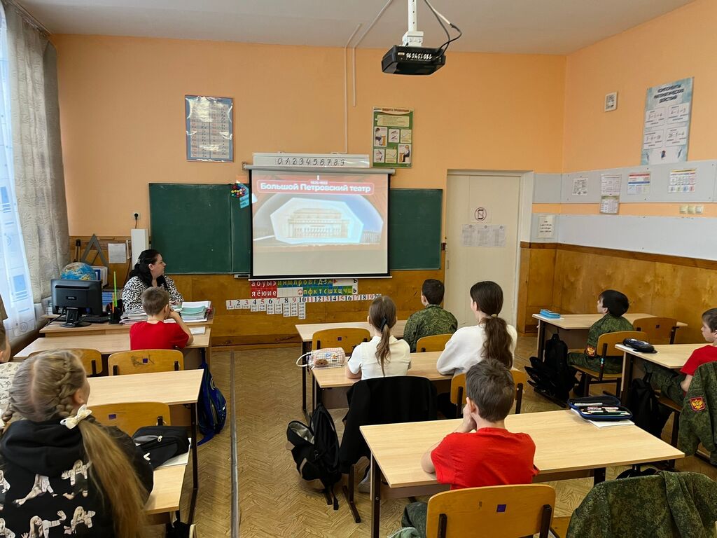 Утро понедельника 23 марта началось с занятия «Разговоры о важном» на тему «Большой. За кулисами. 250 лет Большому театру и 150 лет Союзу театральных деятелей России».